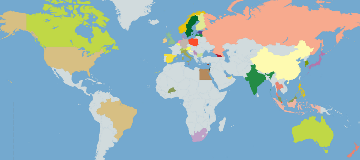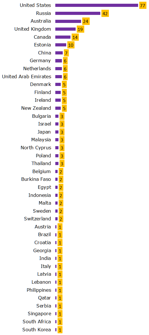 Количество выполненных проектов по странам: